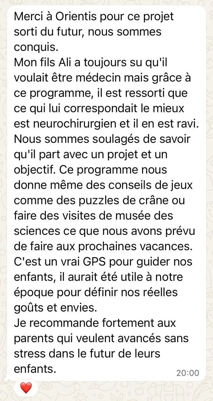 Notre méthode unique : Découvre ORIENTIS, le GPS scolaire qui révèle en 72h le métier idéal de ton enfant, l'y accompagne étape par étape et transforme son avenir en moins de 100 jours.
